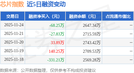 本站消息,11月24日,芯片指数(159599)融资买入404.9万元,融资偿还473.14万元配资头条官网,融资净卖出68.25万元,融资余额2647.34万元,近20个交易日中有12个交易日出现融资净买入。