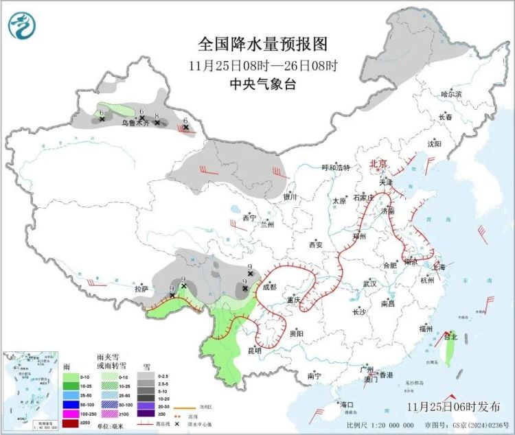 中央气象台预计,25至27日,又一股较强冷空气将自北向南影响我国,我国大部地区将有4至8℃降温,东北地区东部的部分地区降温10至12℃,并伴有4至7级偏北风,部分地区阵风8至10级;新疆中北部、西北地区、华北北部及东北地区有小到中雪或雨夹雪,其中新疆天山山区、东北地区东部等地的部分地区有大到暴雪。