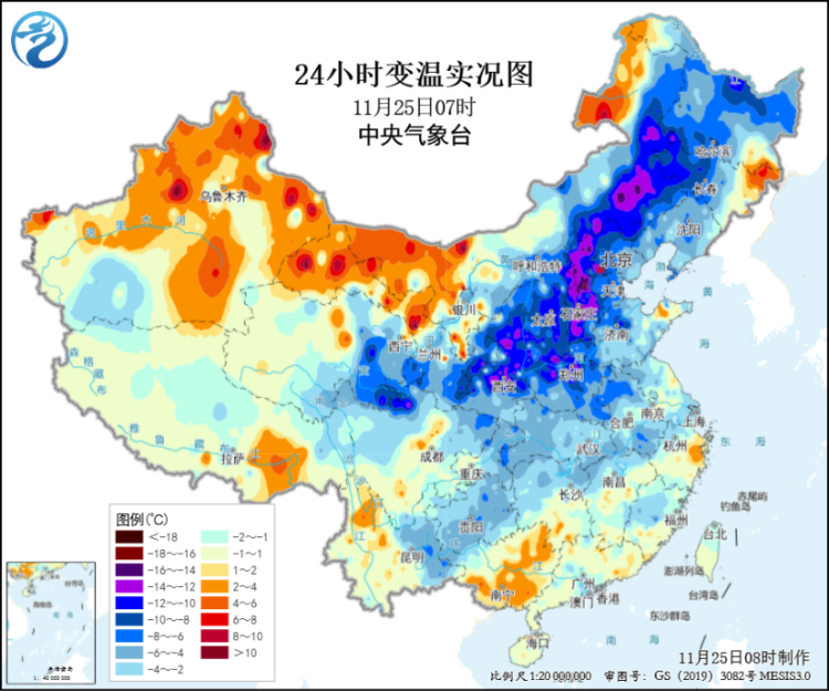 受冷空气影响,今天(25日)7时较昨天7时,青海东部、四川北部、甘肃东部、陕西、山西、河南、山东北部、京津冀、内蒙古东部、吉林西部、黑龙江中北部等地出现6至10℃的降温,其中,河北西部、内蒙古东北部等地局地降温14℃以上。今晨(25日),最低气温0℃线位于四川北部、河南中部至山东中部一带。