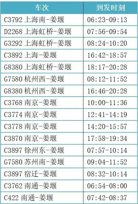 从上海、南京、杭州、合肥、徐州、南通等热门城市前往泰州,车次丰富,十分便捷。